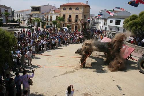 El tuero es una encina grande y seca, que puede encontrarse en los alrededores y que los Quintos de cada año la eligen por su hermosura y la trasladan al pueblo para ser quemada en la noche del 24 de diciembre "Nochebuena"; las fechas a destacar de esta tradición sin: el 25 de julio.- se elige y se desprende de la tierra; el 15 de agosto.- es trasladado y colocado en la plaza y el 24 de diciembre.- una vez bien arropado con taramas, se prende la hoguera al caer la tarde.