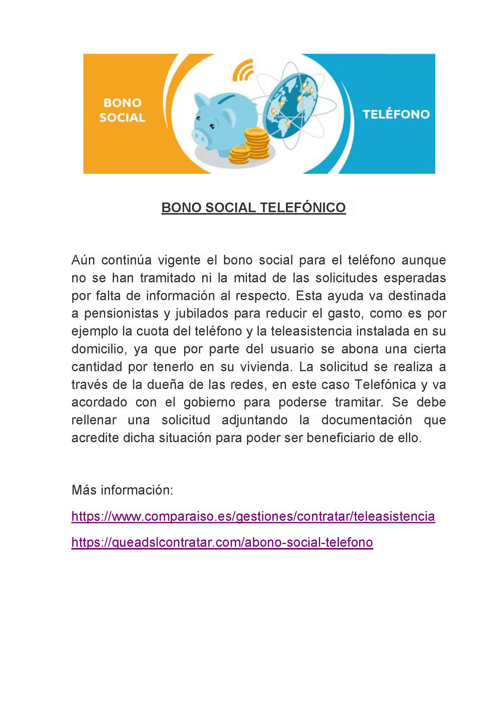 BONO SOCIAL TELEFÓNICO 18 noviembre 2019 Enlaces www.comparaiso.es/gestiones/contratar/teleasistenciaqueadslcontratar.com/abono-social-telefono